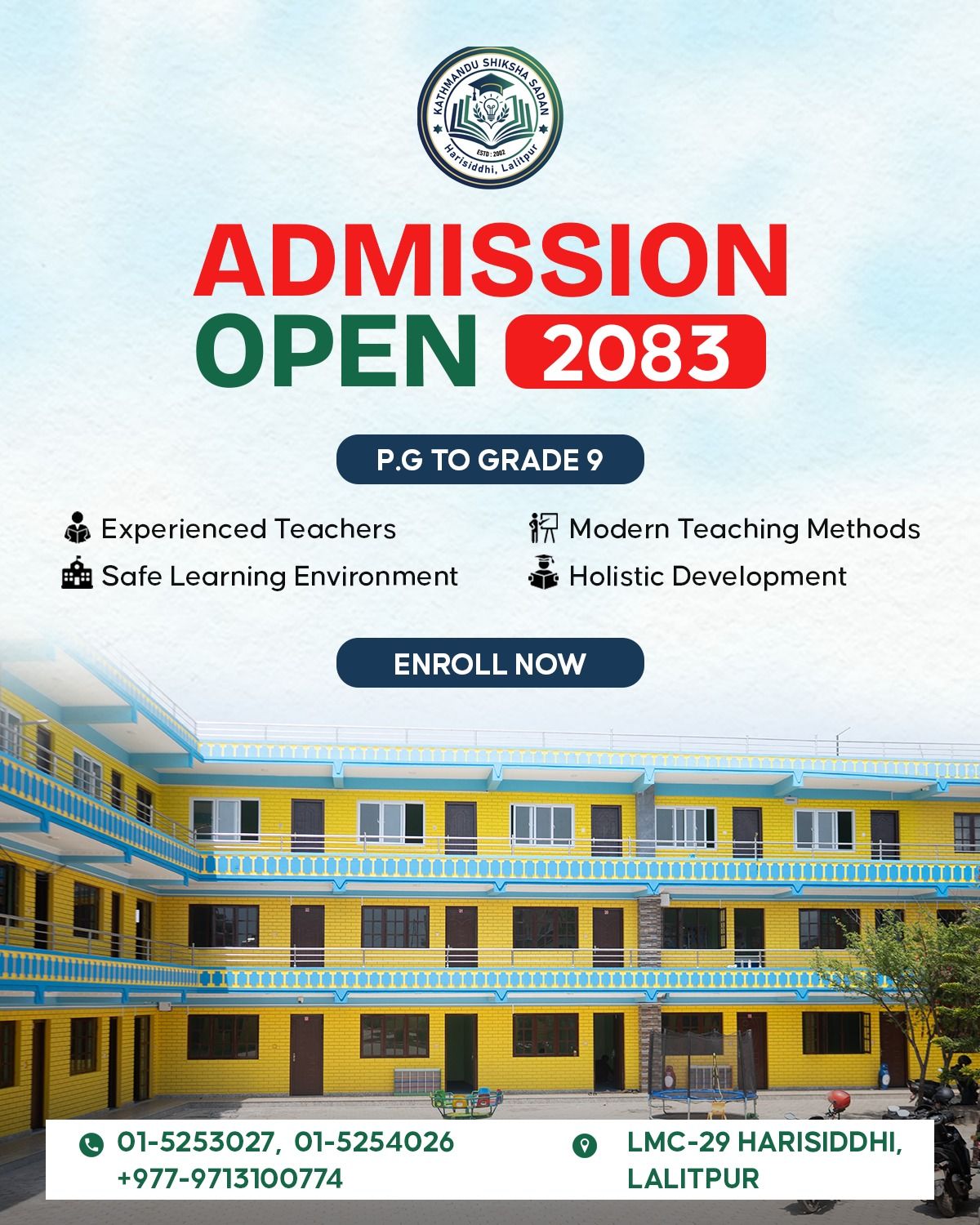 Kathmandu Shiksha Sadan, located in Harisiddhi, Lalitpur-29, announced that admissions are open for Play group to Grade 9 for the academic year 2082/83.