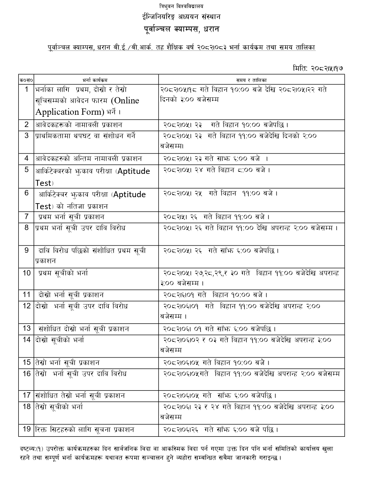 | 5 | Architecture Aptitude test | Bhadra 24, 2082 (8:00 AM) |