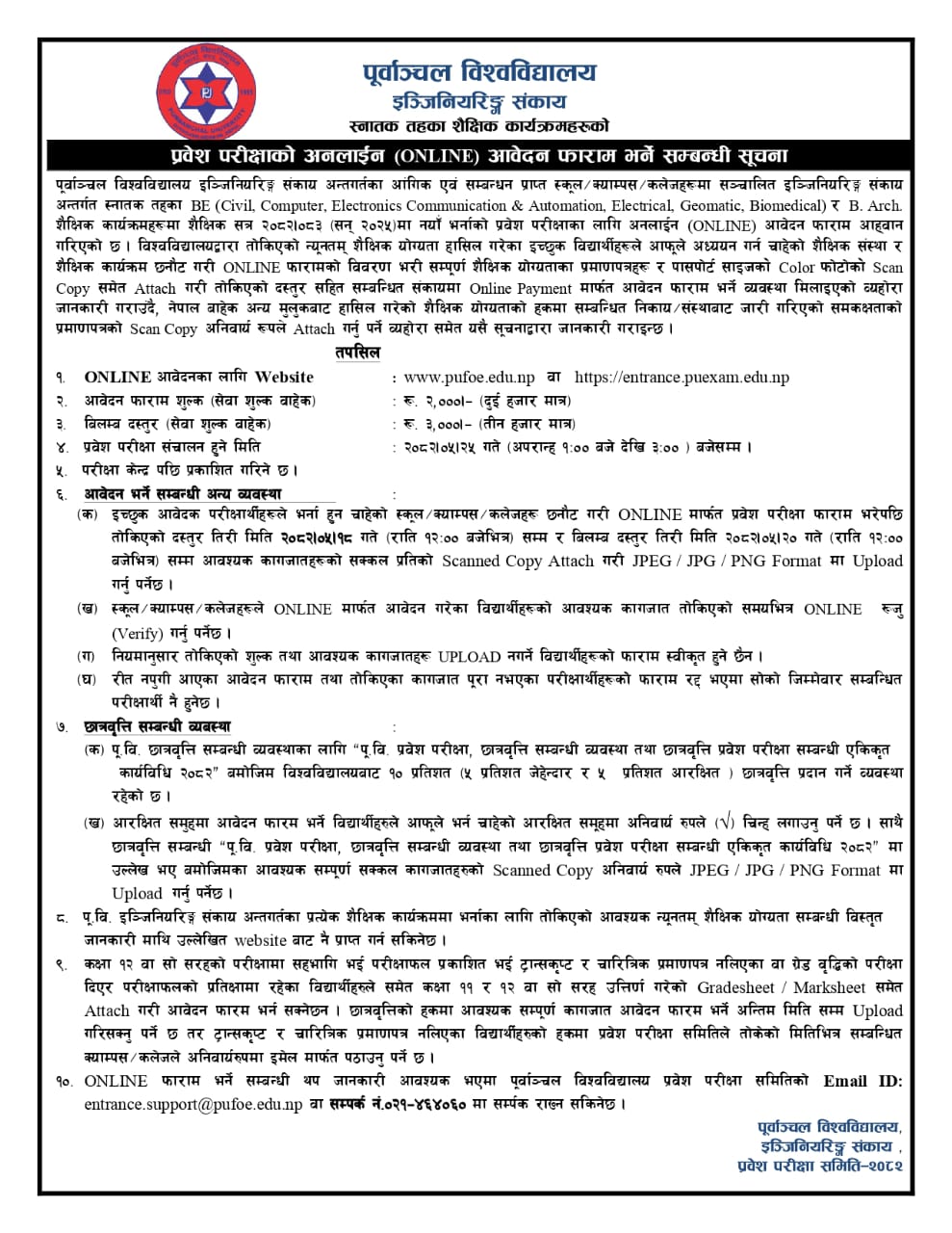 Note: The university won't be responsible for admitting without fulfilling the university's admission criteria of its Purbanchal University, Unified Entrance and Scholarship Procedure -2082.
