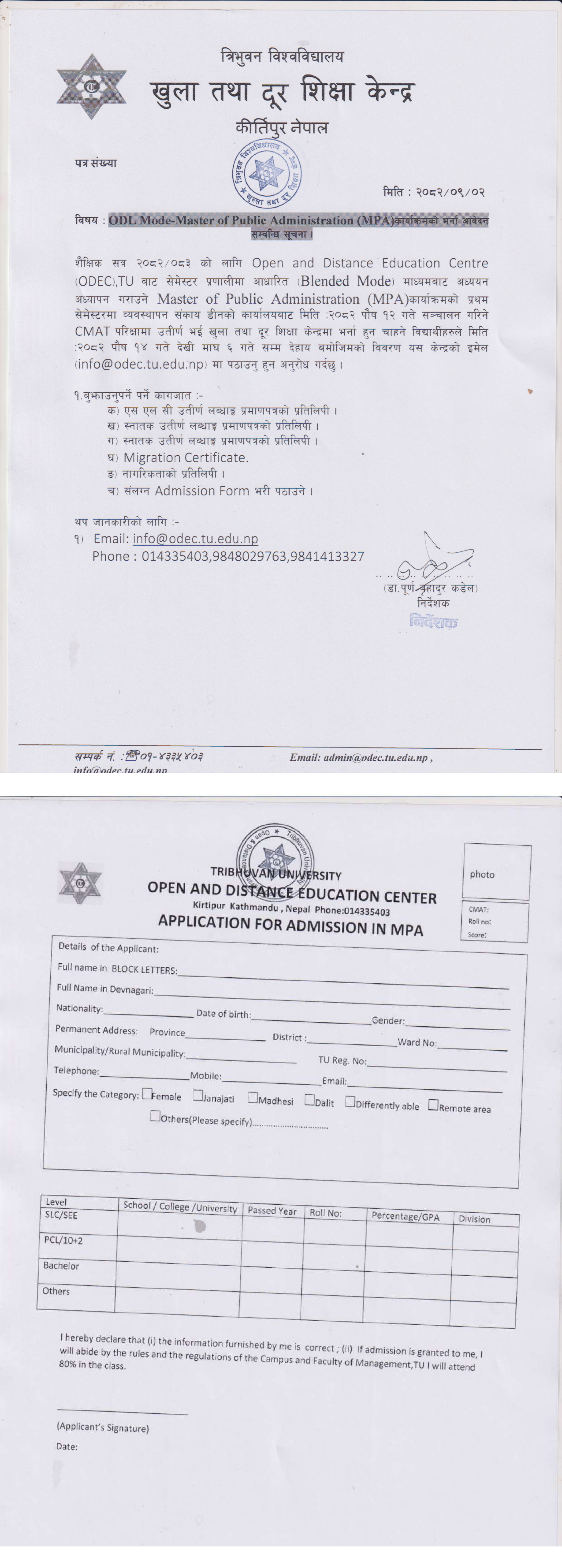 Tribhuvan University’s Open and Distance Education Center (ODEC) has announced the opening of admission applications for the Master of Public Administration (MPA) program for the 2082/083 academic session. The program is designed as a "Blended Mode" course, combining traditional learning with Open and Distance Learning (ODL) methodologies under the semester system.