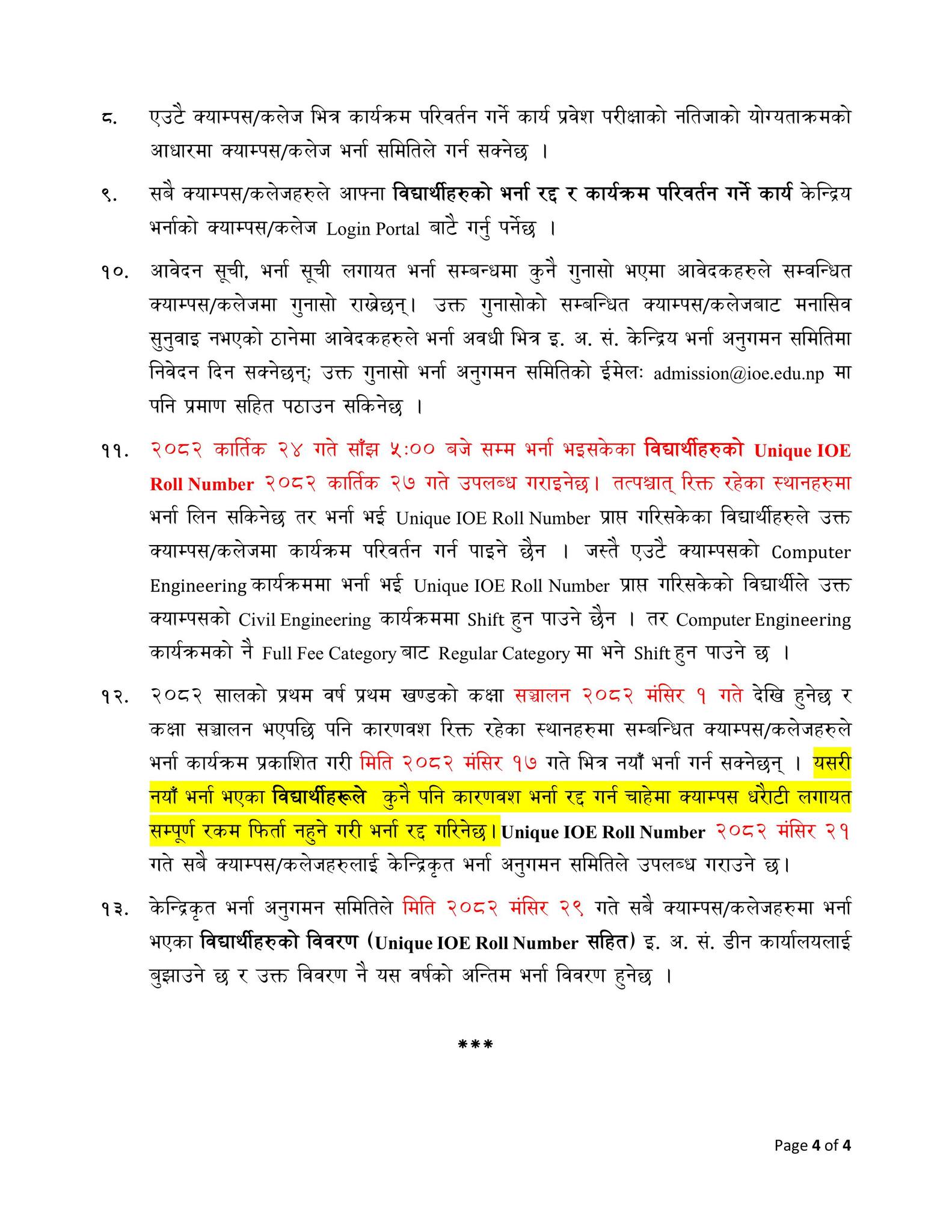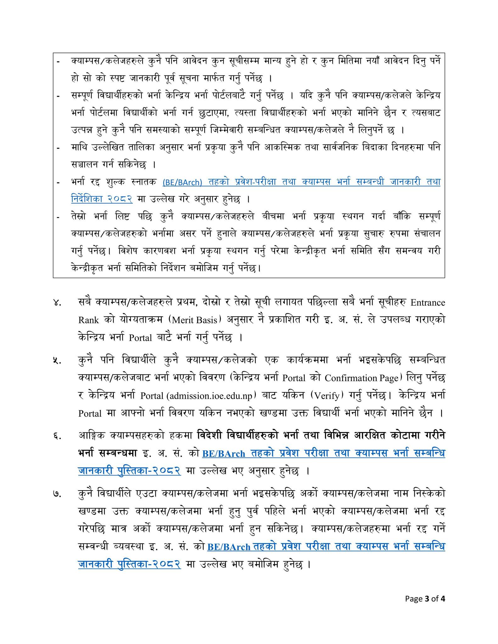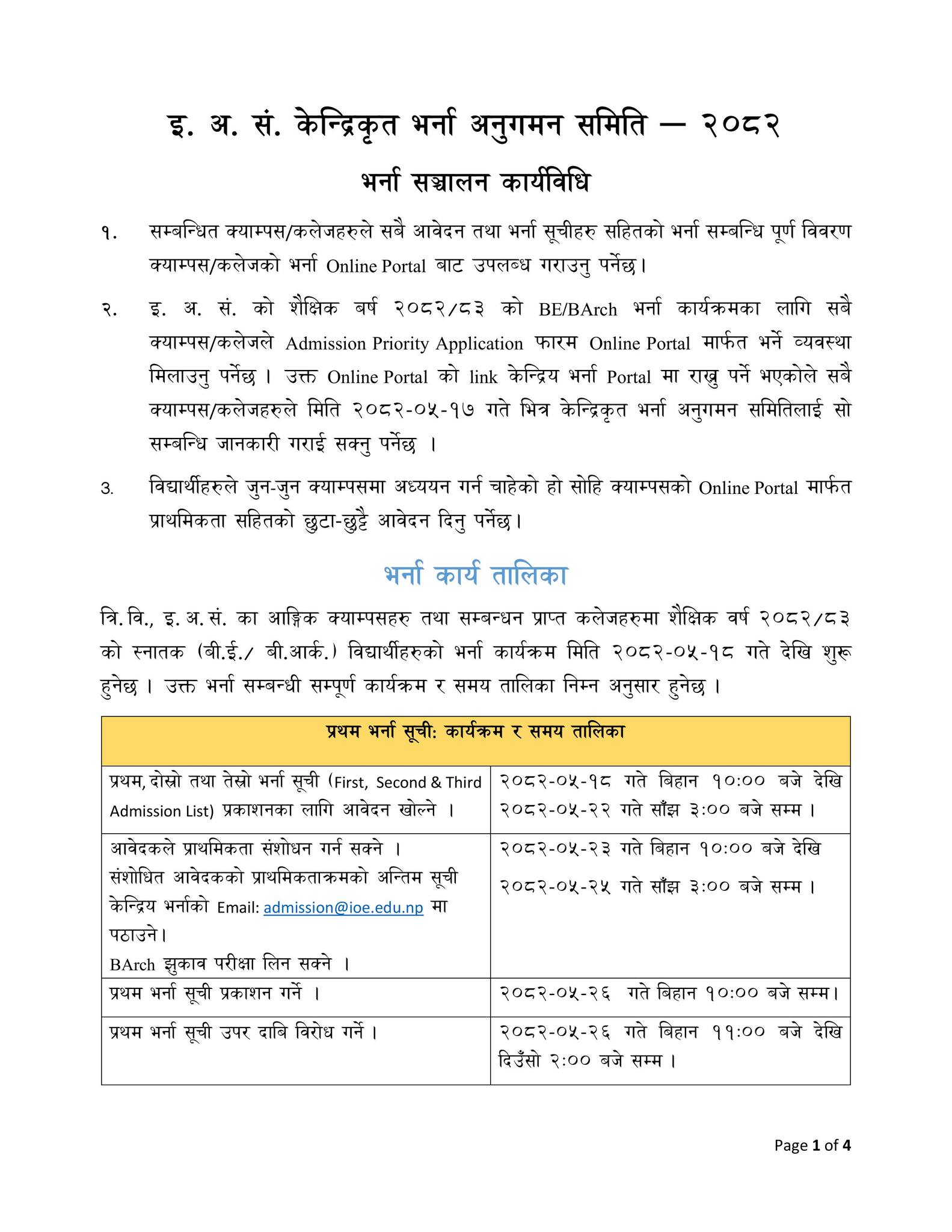 The Institute of Engineering (IOE) Centralized Admission Recommendation Committee has released a detailed work procedure and schedule for the centralized admission process for the BE and B.Arch programs for the academic year 2082/83.