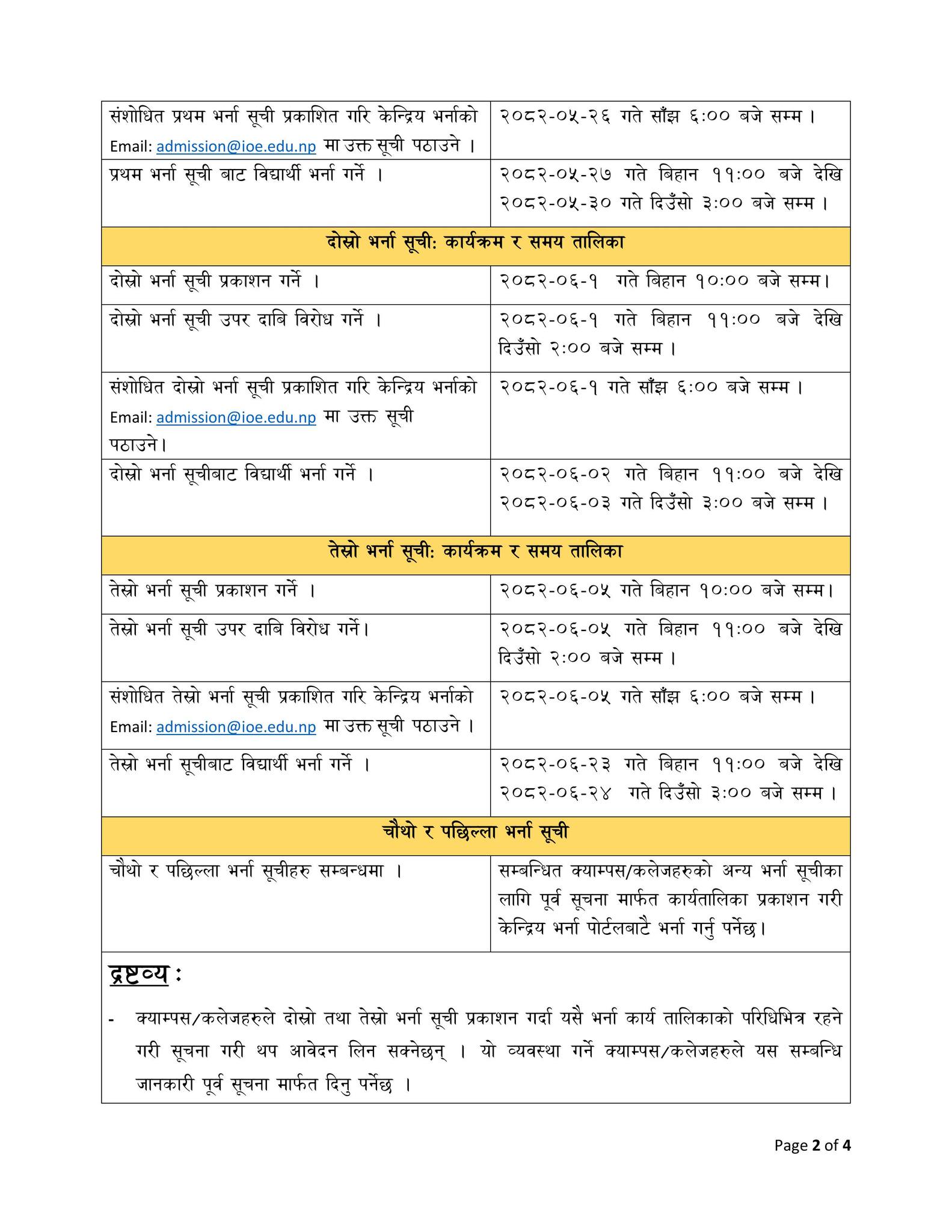 The first, second, and third admission lists will be released starting from 2082-05-18 (November 3, 2025) 10 AM to 2082-05-22 (November 07, 2025) up to 3 PM.