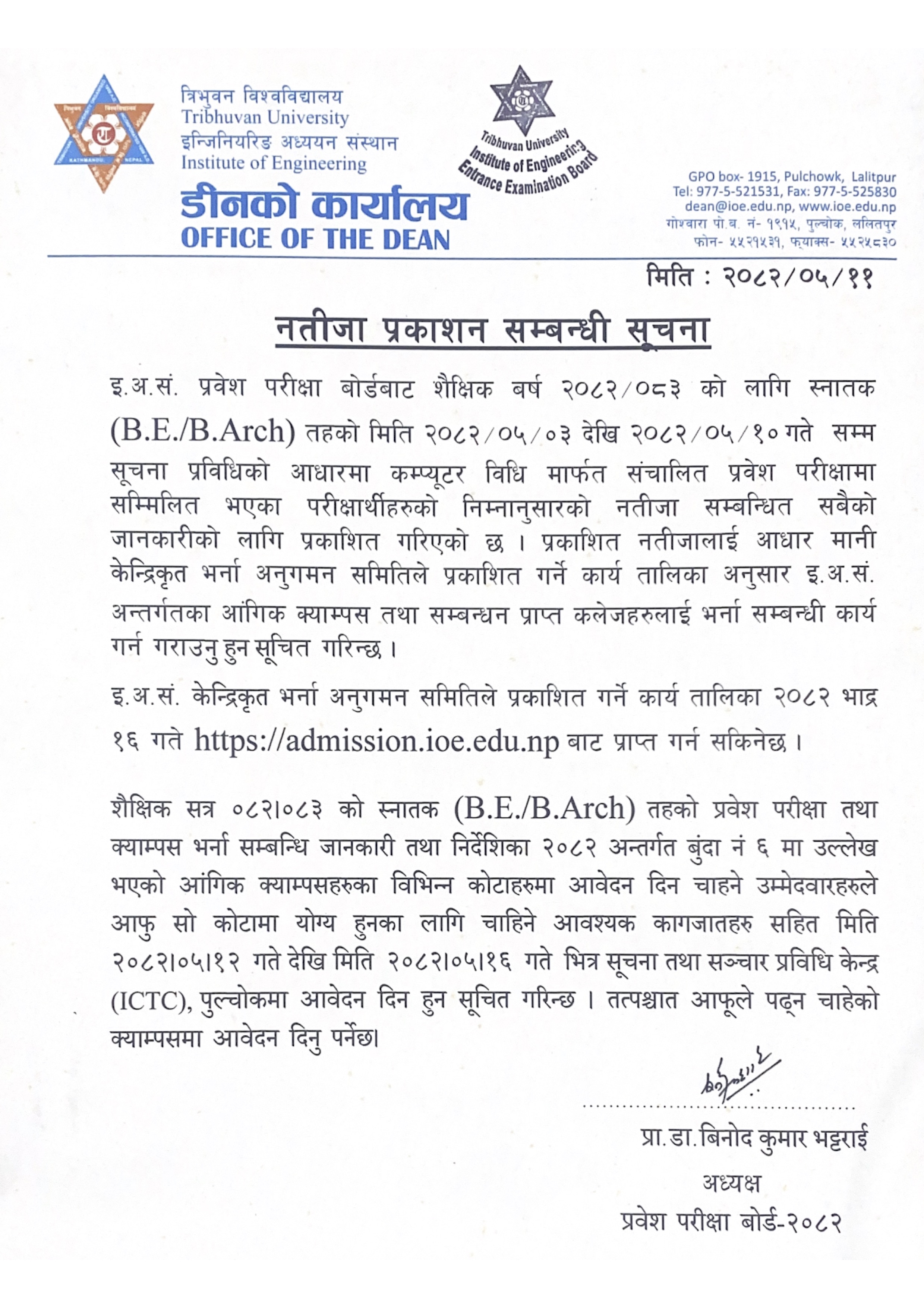 BE/B.Arch Entrance Exam Results (2082/2083) - Institute of Engineering, Tribhuvan University