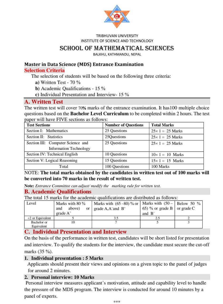 So students with B Sc CSIT, B Math Sc, B Sc. (Math), B Sc (Stat), B Sc/BA with Math / Stat in the first two years, BE, BIT, BCA (with two Math and one Stat) can apply for this program.