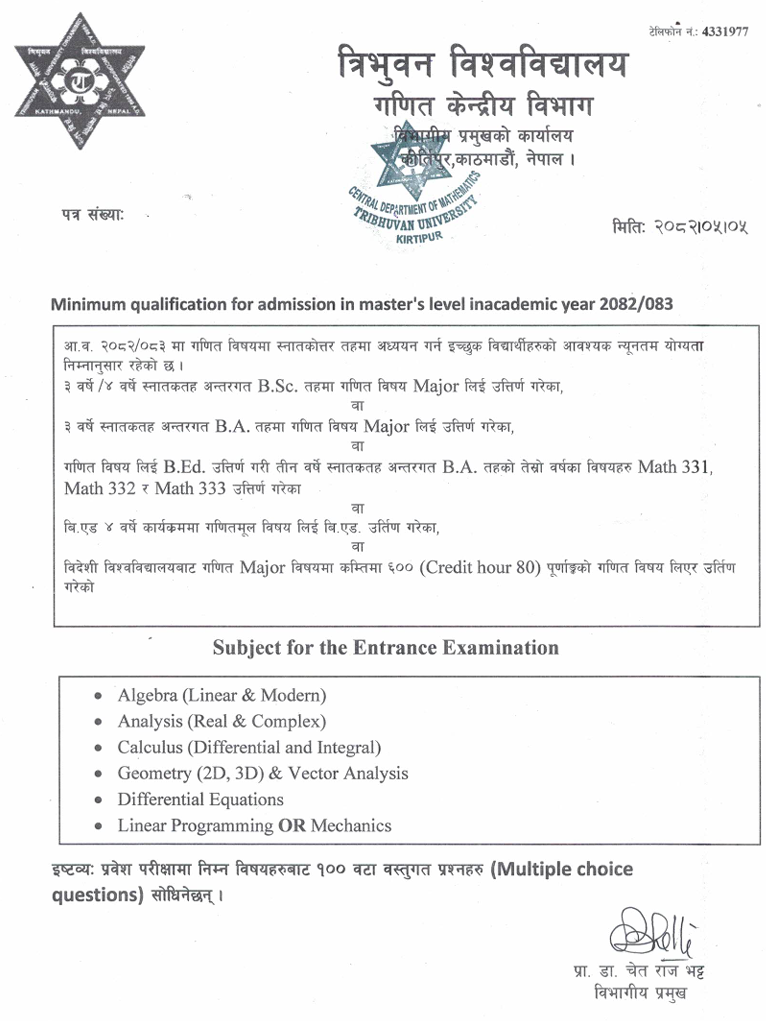 - Students must have passed Bachelor level from constitutent campus of Tribhuvan University or Community campuses.