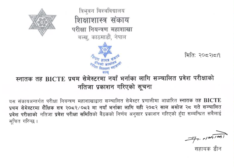 Tribhuvan University, Faculty of Education, Examination Controller's Division, Balkhu, has published the entrance exam results of Bachelor of Education in Information Communication Technology (BICTE).