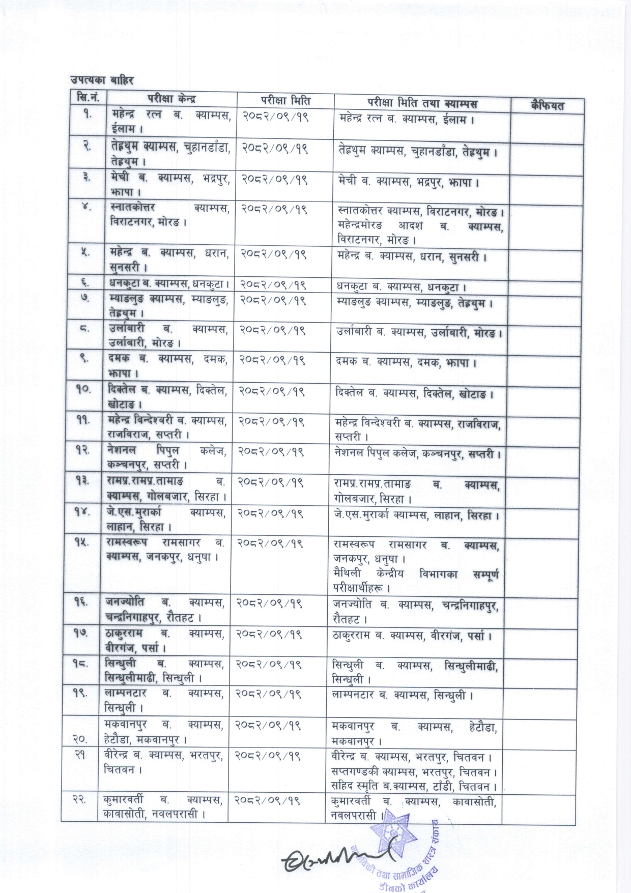 View the official notice with examination centers below: