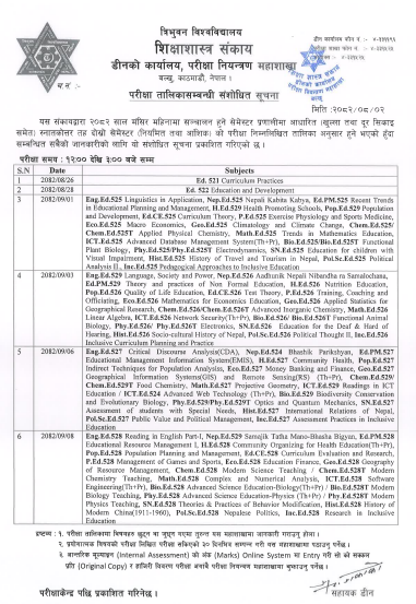 Tribhuvan University, Faculty of Education, Office of the Controller of Examination, has published the examination routine for the second semester of MEd for regular examinees.