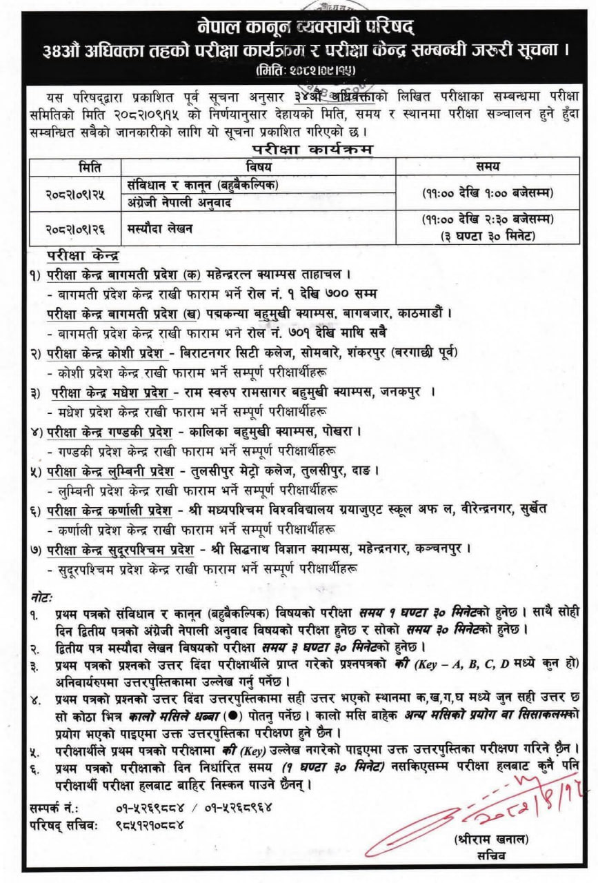 The Nepal Bar Council has published the advocate license examination center as follows: