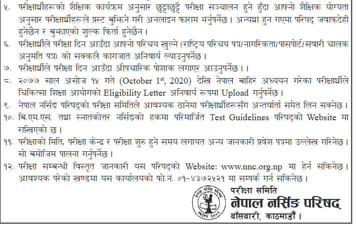 For more details, candidates may contact the Nepal Nursing Council at 01-4372521.