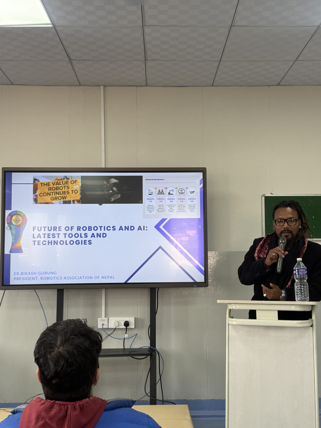 The session featured two distinguished speakers. Er. Bikash Gurung, President of the Robotics Association of Nepal (RAN), and Shakriya Pandey, CEO and Founder of VayuDrishti and National Winner of Hult Prize Nepal 2025, shared their personal journeys, challenges, and perspectives. Their discussions covered topics such as robotics, artificial intelligence, climate technology, and the development of scalable, impact-driven solutions within Nepal. Additionally, Ichhit Sapkota, the On-Campus Winner 2024–25, motivated attendees by sharing real experiences from his own Hult Prize journey.