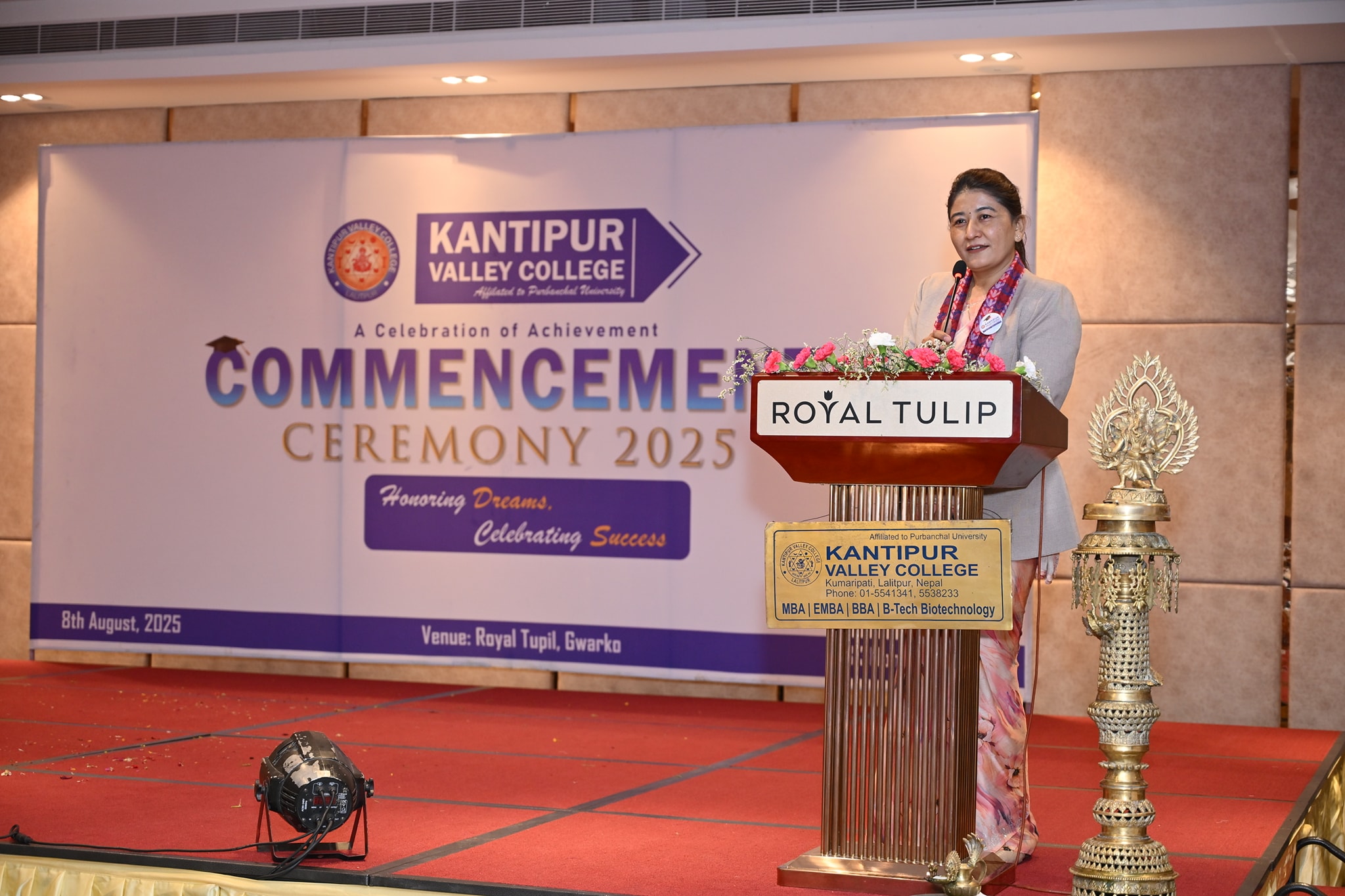 Kantipur Valley College (KVC) celebrated its 'Commencement Ceremony 2025' in a grand event at the Royal Tulip Hotel, Gwarko, on August 8, 2025. The ceremony honored the graduating students of MBA, EMBA, BBA, and B-Tech in Biotechnology programs, celebrating their academic achievements in the presence of faculty, families, and distinguished guests.