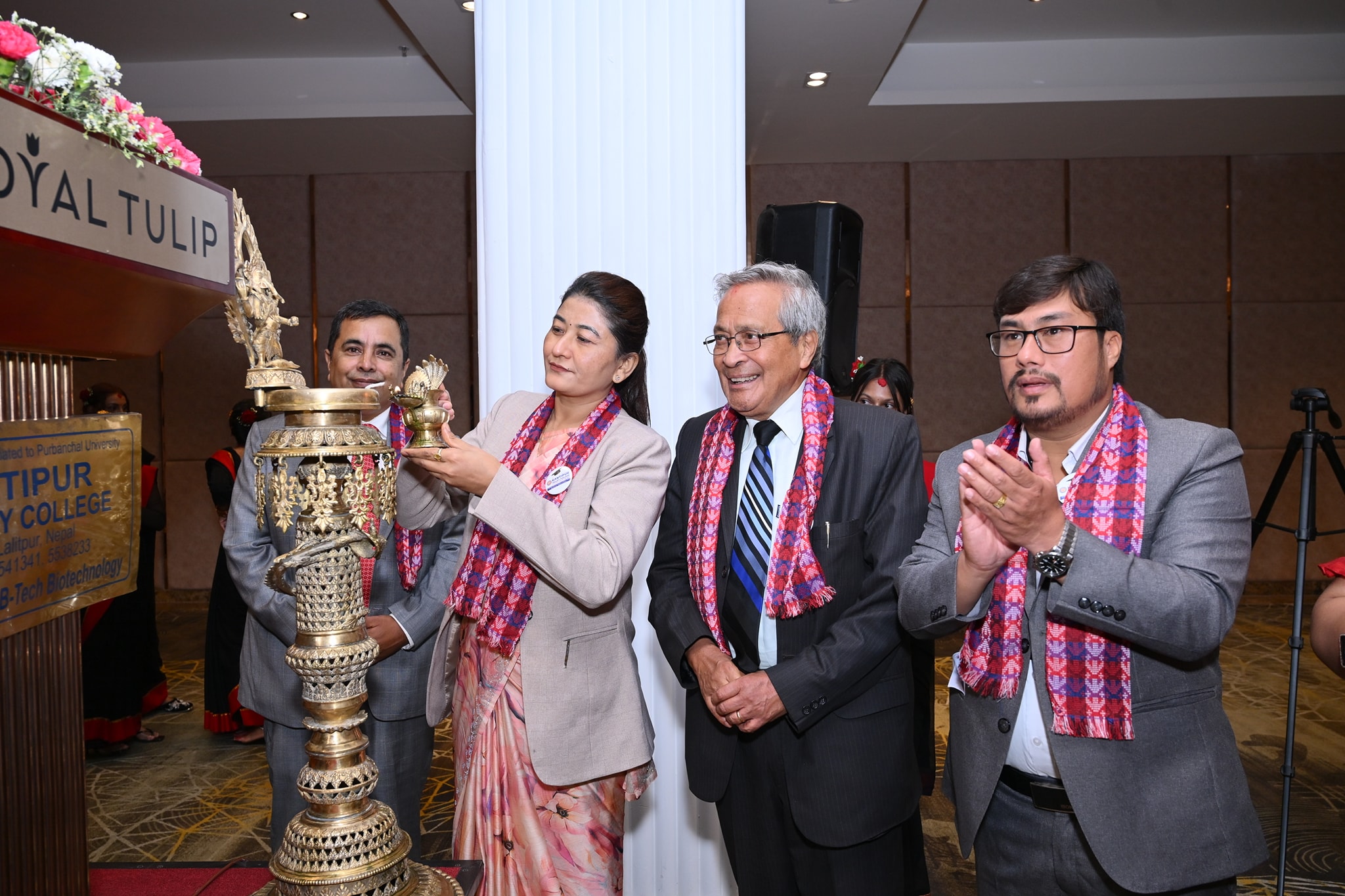 The event commenced with the ceremonial lighting of the Panas by the Chief Guest, Ms. Menuka Shrestha, Deputy Exam Controller of Purbanchal University. Although the Mayor of Lalitpur Metropolitan City, Mr. Chiri Babu Maharjan, was unable to attend due to health reasons, he extended his best wishes to the graduates.