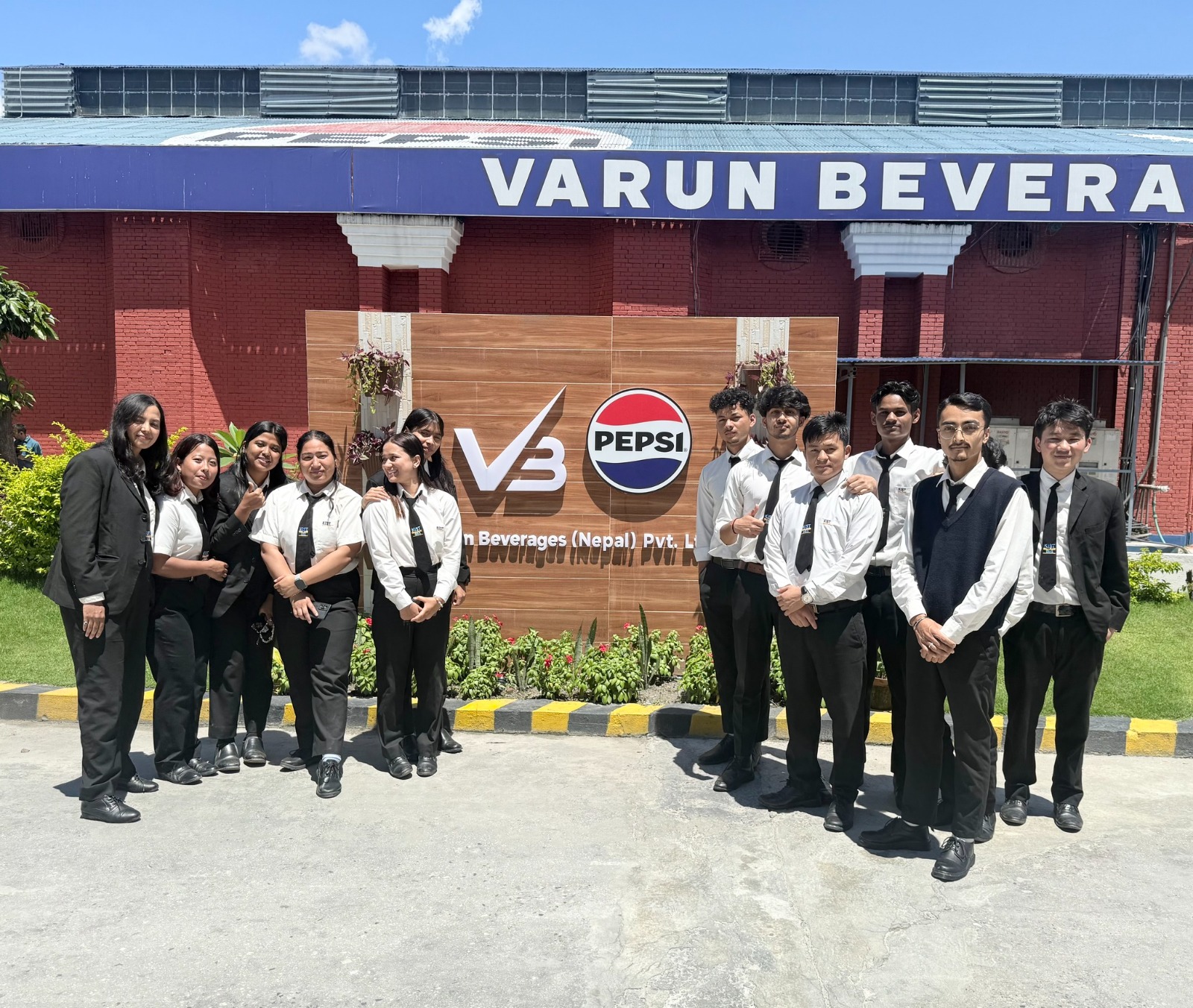 During the visit, the students observed the production workflow, quality control measures, and operational strategies employed by one of Nepal’s leading beverage companies. They also gained valuable insights into how large-scale manufacturing units are managed effectively to meet market demand.