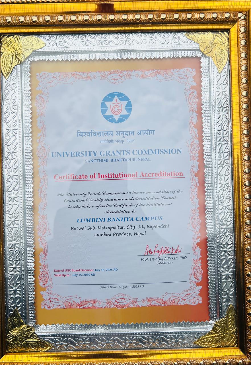 Lumbini Banijya Campus, long regarded as a model community institution in Nepal, has made history by becoming the country’s first educational institution to receive the Quality Assurance and Accreditation (QAA) certification for the third time from the University Grants Commission (UGC) Nepal.