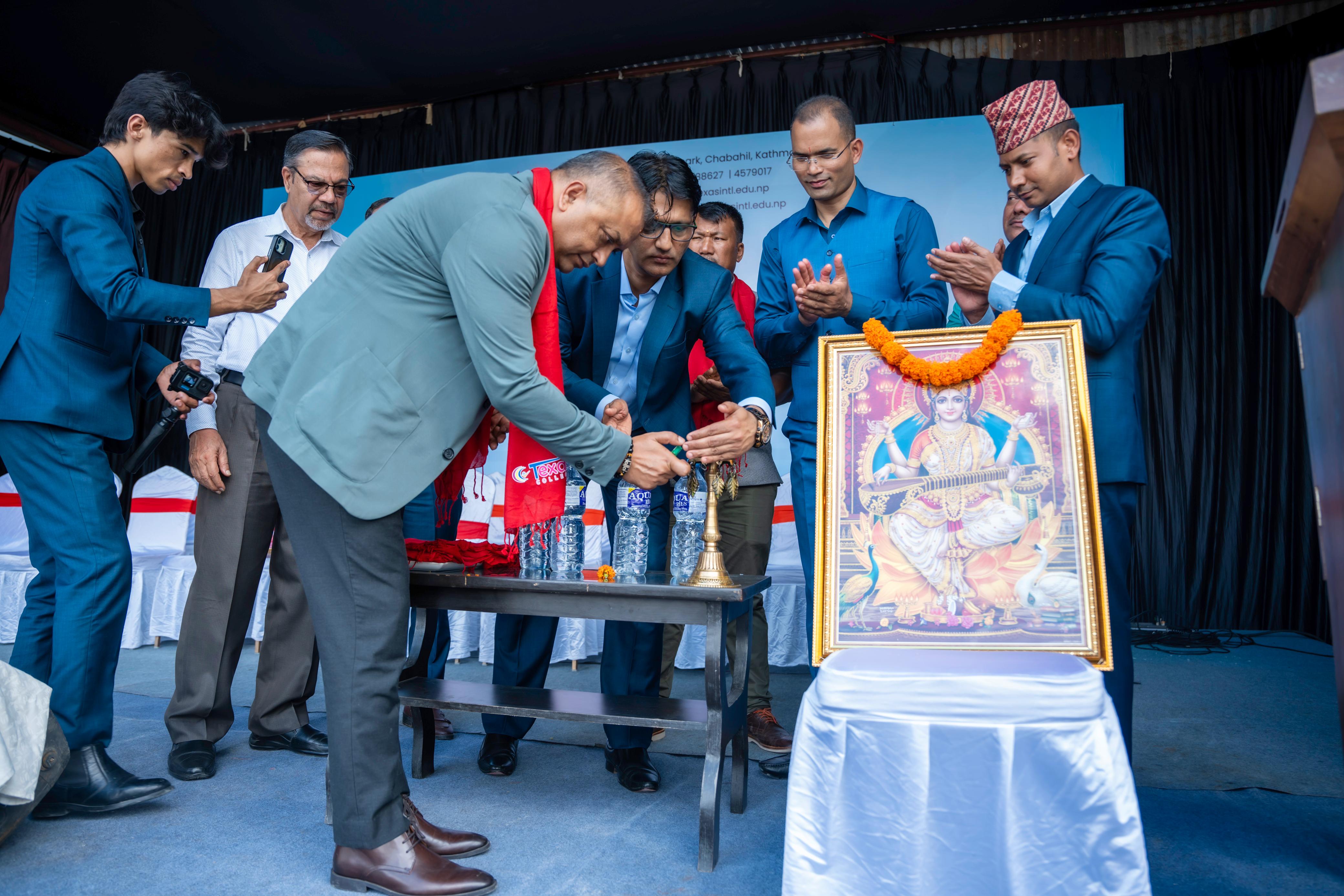 The program began with a welcome address from Principal Shyam Sundar Shrestha, followed by Managing Director Jitendra Kumar Bakhu presenting floral tributes to the chief guest and special guests. The event highlighted student-driven projects in the field of IT, IoT, robotics and digital innovation.
