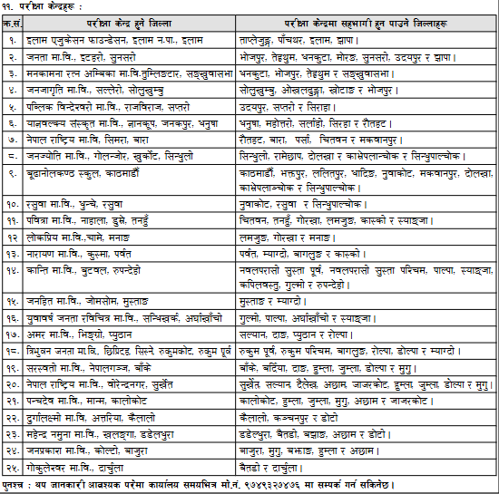 | 19. | Saraswati Secondary School, Nepalgunj, Banke | Banke, Bardiya, Dang, Humla, Jumla, Dolpa, and Mugu. |