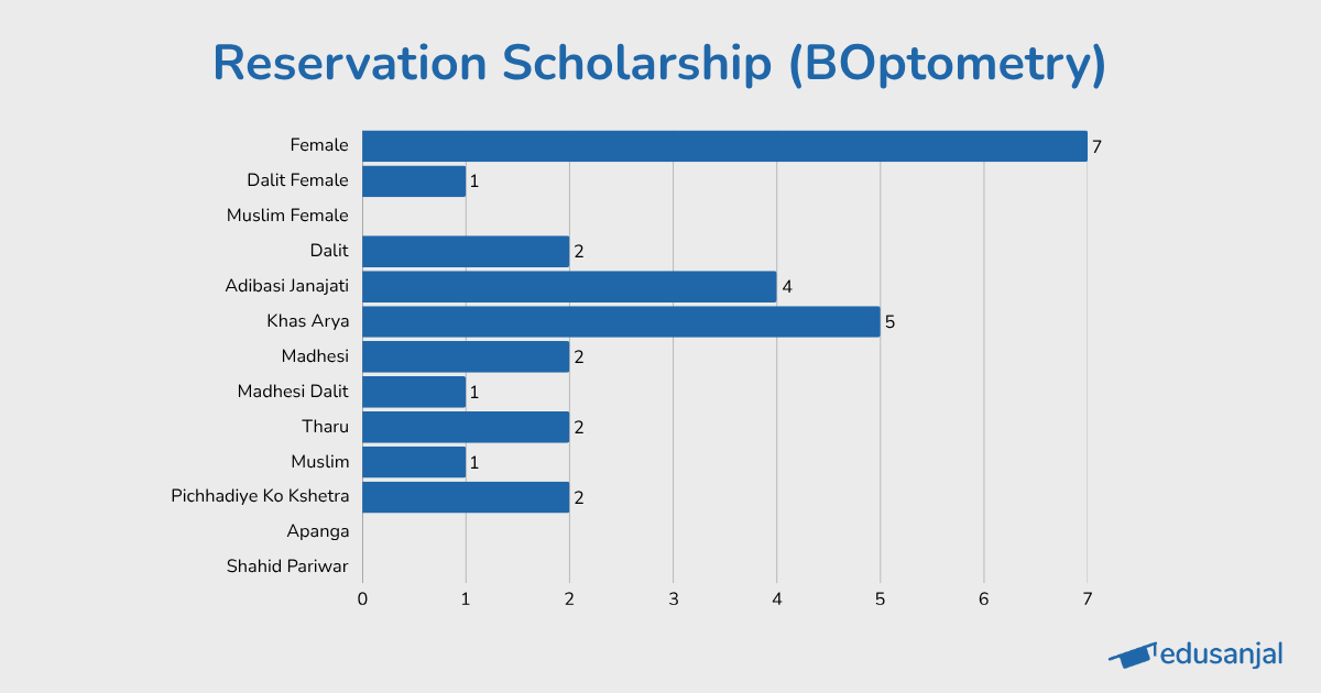 The government of Nepal allocates 100 seats for candidates who wish to pursue a Bachelor's degree in Optometry in Nepal for the current academic year. Similarly, the government allocated 56 scholarship seats for students who wish to study B.Optometry in Nepal.